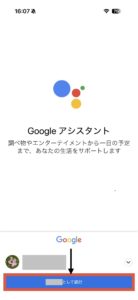 起動すると、どのアカウントでログインをするか求められますので、普段音声検索をするアカウントや、家電操作に紐づけているGoogleアカウントを選択してください。