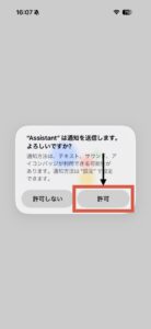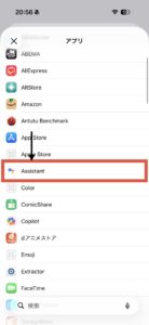 アプリを開く の「アプリ」をタップして、「Assistant」を選択します。