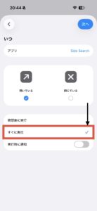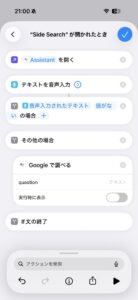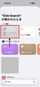 ショートカットのオートメーション機能がSide Searchを起動したことにより自動で動作を開始
