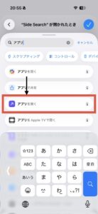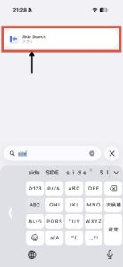 下の検索バーをタップして「side」と入力すると、先ほど開いたSide Searchアプリが候補に出てくるかと思うので、それをタップします。