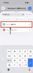 再度「アクションを検索」の検索バーをタップし「音声入力」と入力して「テキストを音声入力」をタップします。