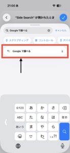 いつ の下に「選択」ボタンがあると思うので、それをタップして「Side Search」を選択して「☑️」をタップします。