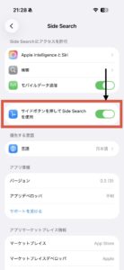 「サイドボタンを押してSide Searchを使用」のスイッチを緑(On)にします。