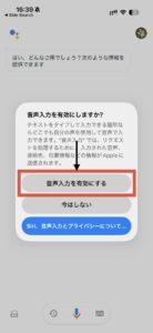 そうすると「音声入力を有効にしますか?」と表示される方がいらっしゃるかもしれません。