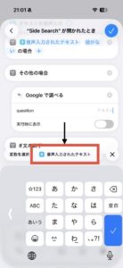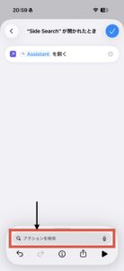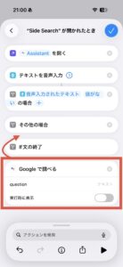 ショートカットのオートメーション機能がSide Searchを起動したことにより自動で動作を開始