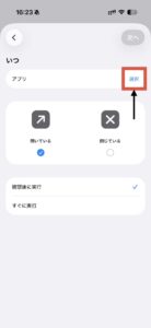個人用オートメーションという画面が表示されたら真ん中あたりまでスクロールして「アプリ」をタップします。