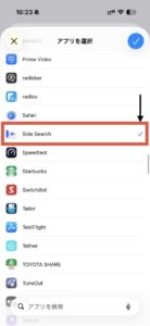 いつ の下に「選択」ボタンがあると思うので、それをタップして「Side Search」を選択して「☑️」をタップします。